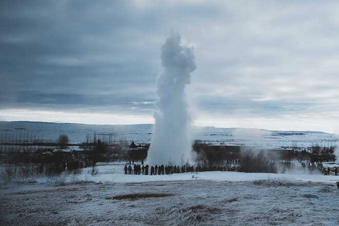 The next wonder on our list is the geothermal valley in Hakadalur, with steam vents, hot springs, and geysers that erupt with such power that they leave you speechless for a minute. Strokkur, Iceland's most active geyser, puts on an impressive show every 4-10 minutes. You'll see its 65.6-foot (20-meter) fountains shoot into the air right in front of your eyes.