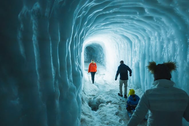Experience Iceland’s natural contrasts in one day with an icy Into the Glacier adventure inside Langjökull and a hot spring soak at Krauma geothermal spa.