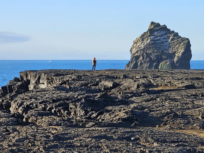 A scenic drive across the peninsula's ancient lava fields leads to the Bridge Between Continents near Hafnir, where a pedestrian footbridge spans the rift between the Eurasian and North American landmasses. From there, the route continues to Reykjanesviti - Iceland's oldest active lighthouse - on a windswept headland at the peninsula's southwestern tip. The dark sea cliffs of Valahnúkamöl, the roaring steam vents and boiling mud of Gunnuhver, and the wave-carved Brimketill lava rock pool complete a journey through scenery that most visitors to Iceland never reach.