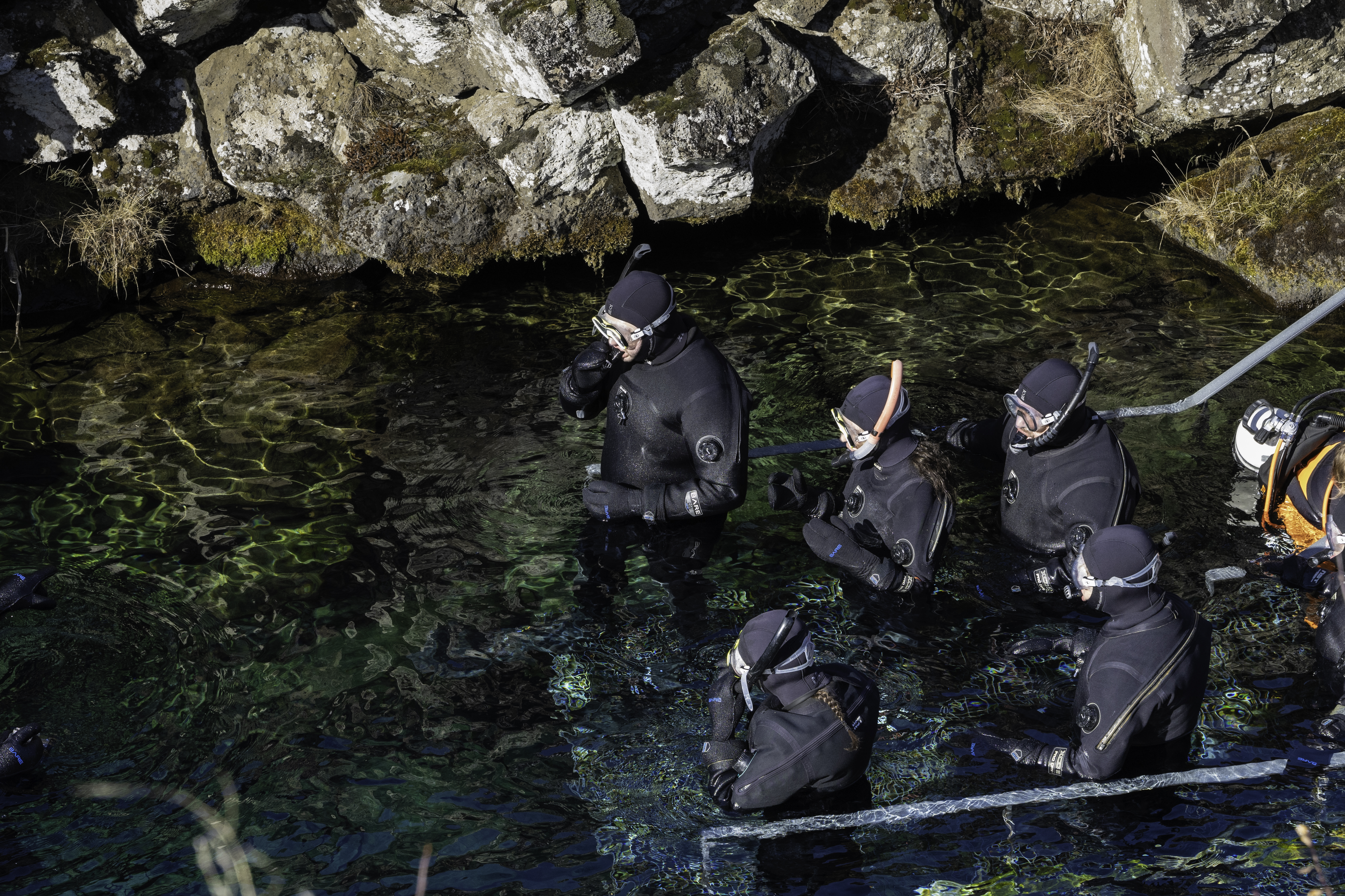 After Þingvellir, your adventure truly begins. Equipped with a dry suit, mask, snorkel, and fins, you’ll enter the crystal-clear waters of Silfra. Floating between two continents, you’ll snorkel in some of the clearest water on Earth—an exhilarating, once-in-a-lifetime experience in a truly surreal setting.