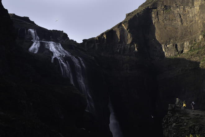 After driving about one hour from Reykjavík, we will begin our hike. The hike takes about 3 hours in total. On the way, you will discover plenty of rivers, cross two of them and even walk through a cave. One hour after starting, you will get your first sighting of the Glymur Waterfall. It is a 200 meters high waterfall, nested at the bottom of a canyon. From the same place, as your turn your head, you will have a gorgeous panorama over the fjord of Hvalfjörður. As we go further up, the views are getting more and more spectacular. We will eventually reach the top of the waterfall, where we will need to go to the other side of the canyon. To do this, we will have to wade through a river! On the way down, the waterfall will no longer be visible, but we will walk down with the fjord always in our sight.