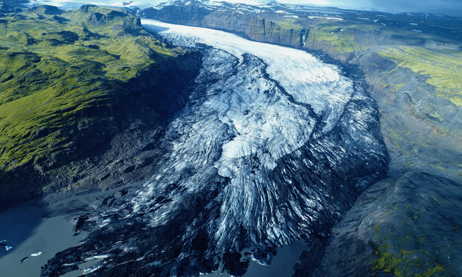 The journey continues to the Sólheimajökull Glacier viewpoint, where the ice extends down from the larger Mýrdalsjökull ice cap. The area highlights the contrast between ice, ash, and rock, and offers a closer look at Iceland’s changing glaciers.