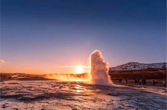 Your day starts with a visit to Þingvellir National Park, where you can walk between two continents and learn about Iceland’s history and nature. You will then continue to the Geysir geothermal area, where Strokkur geyser erupts every few minutes. Next, visit the powerful Gullfoss waterfall, one of the most popular waterfalls in Iceland.