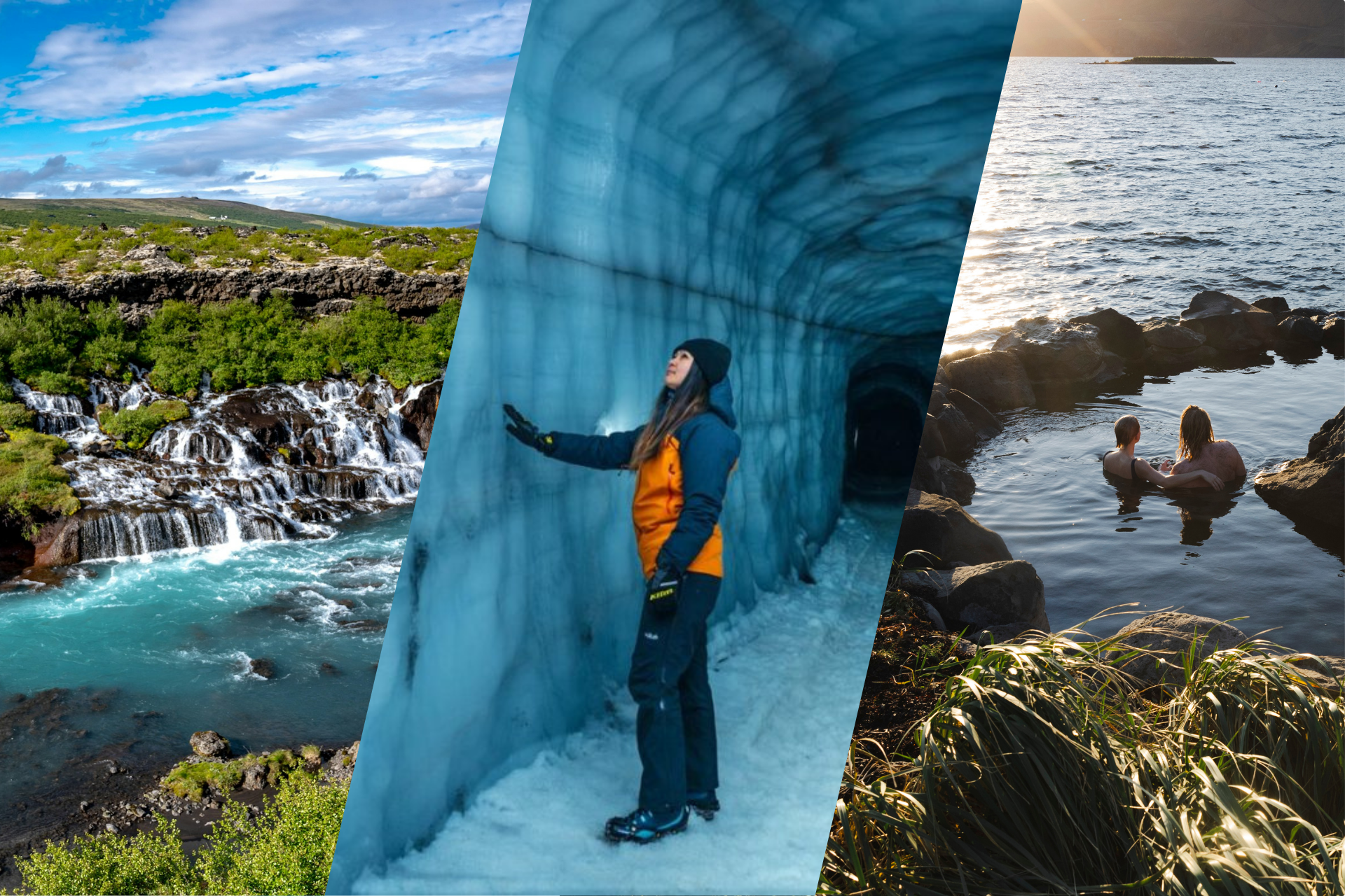 On the return, Fossatun offers a quieter moment beside a natural waterfall in the West Iceland countryside. The day ends at Hvammsvik Hot Springs on the shores of Hvalfjörður fjord - eight natural pools set at the edge of the Atlantic Ocean, named one of the Best Things to Do in the World by Time Out in 2023. In any season, it is a remarkable place to close a day.