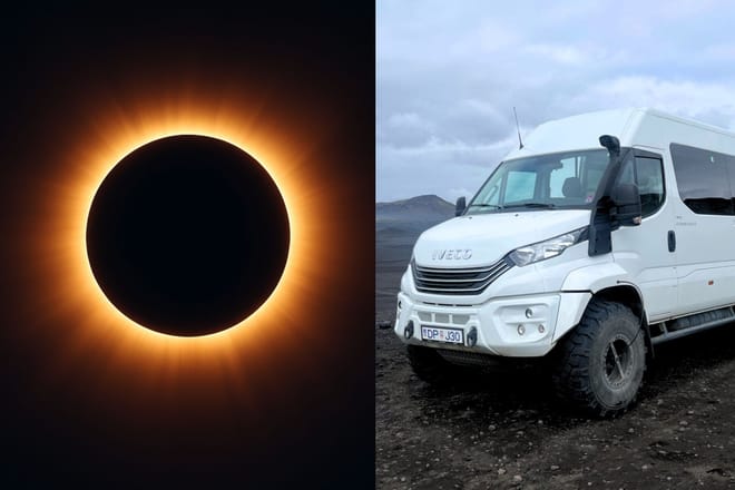 While waiting, enjoy a light picnic in the fresh Icelandic nature. When the eclipse begins, watch as daylight slowly turns into darkness — a truly unforgettable moment. After totality, we will celebrate together with a toast before heading back to Reykjavík.